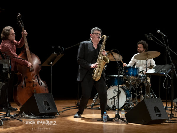 En el ecuador del concierto, el líder presentó otra nueva composición llamada “You Came At Midnight”, una preciosa balada dedicada a su hija, emocionante y delicada partitura adornada por sutiles arreglos de piano, y desarrollada con improvisaciones de saxo tenor y contrabajo. “A Hundred Miles”, composición del pianista (Lucentum, Youkali Music, 2020) fue otro de los temas incluidos. Una pieza vigorosa, con matices flamencos, en la que lucieron los solos de Simón y Valverde, sobre la contundente base rítmica. En “Lupo’s House”, alternaron los ritmos de bossa y el swing, dando forma a una pieza muy dinámica. Tras la vitalista introducción, compartieron improvisaciones de saxofón y contrabajo, y un final del tema, mano a mano, entre los dos principales solistas, Valverde y Simón, sobre la estructura armónica. Basada en una transcripción de Valverde del standard “My Shining Hour”, de Harold Arlen / Johnny Mercer, y tocado a un tempo alto, dieron rienda a sendas improvisaciones de saxofón y piano, además del baterista, que realizó un solo escueto e incisivo. El grupo despidió su concierto con un bis, “One For Amos”, incluido en su primer disco Looking Forward, otro tema rápido que dejó encantados a los asistentes.