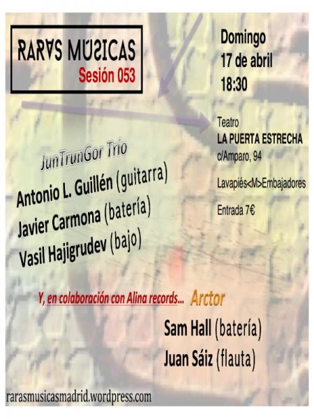 ![Raras Músicas. Sesión 053: JunTrunGor Trío - Arctor. La Puerta Estrecha. 2016-04-17 (Madrid) [Noticias] 2 Tomajazz Raras Músicas. Sesión 053: JunTrunGor Trío - Arctor. La Puerta Estrecha. 2016-04-17 (Madrid) [Noticias] Raras Músicas 53_2016-04-17](http://www.tomajazz.com/web/wp-content/uploads/2016/04/Raras-Músicas-53_2016-04-17-450x600.jpg)