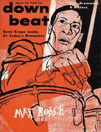 Max Roach en la portada del Down Beat del 20 de marzo de 1958.