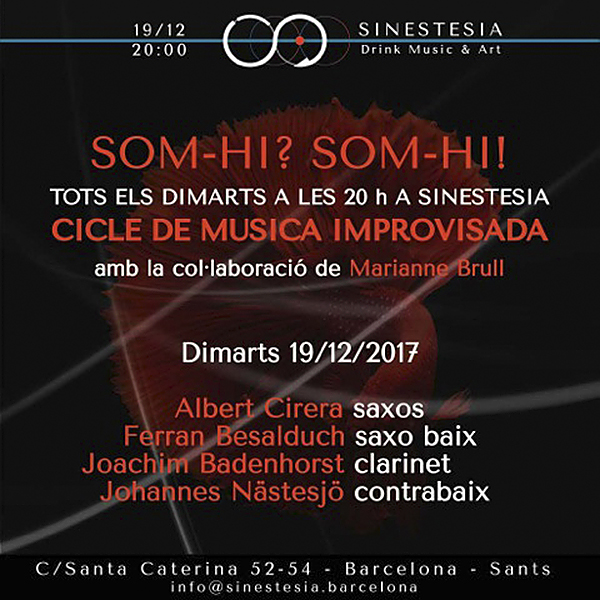 ![Sinestesia: Cirera - Besalduch - Badenhorst - Nästesjö. Ciclo de Música Improvisada (Barcelona. 2017-12-19) [Noticias] 2 Tomajazz Sinestesia: Cirera - Besalduch - Badenhorst - Nästesjö. Ciclo de Música Improvisada (Barcelona. 2017-12-19) [Noticias] Sinestesia: Cirera - Besalduch - Badenhorst - Nästesjö. Ciclo de Música Improvisada (Barcelona. 2017-12-19) [Noticias] 2](https://tomajazz.com/web/wp-content/uploads/2017/12/Sinestesia_171219_Sinestesia.jpg)