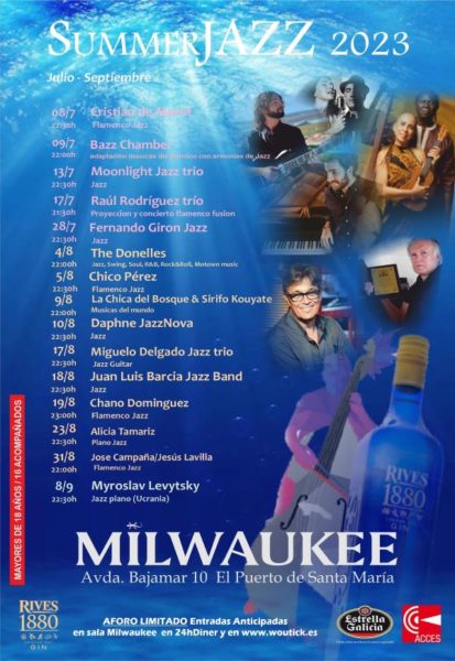 ![Summer Jazz 2023 (Sala Milwaukee, El Puerto de Santa María, Cádiz. 8 de julio al 8 de septiembre de 2023) [Noticias de jazz] Tomajazz 9.0 Summer Jazz 2023 El Puerto de Santa María Tomajazz Noticias Summer Jazz 2023 (Sala Milwaukee, El Puerto de Santa María, Cádiz. 8 de julio al 8 de septiembre de 2023) [Noticias de jazz] - Tomajazz 9.0 - Entre el 8 de julio y el 8 de septiembre tendrá lugar en Sala Milwaukee de El Puerto de Santa María (Cádiz), el ciclo Summer Jazz 2023 #Ciclodejazz #FestivalDeJazz #Festivalesdejazz #Noticiasdejazz](https://tomajazz.com/web/wp-content/uploads/2023/07/Summer-Jazz-2023-El-Puerto-de-Santa-Maria-Tomajazz-Noticias-413x600.jpg)