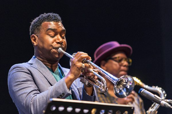 “One By One”, a ritmo de swing, fue el tema de presentación de la banda. De entrada, el sonido y la buena conjunción del grupo me dejó una buena y asequible primera impresión. Íbamos a ser testigos de un concierto mágico, en el que se daban la mano varios estilos de la época del jazz clásico, swing, bebop, hard bop. La banda se recreó en “Evidence”, con las enérgicas improvisaciones del trompetista Randall Haywood, un músico con un sonido y un lenguaje incisivo, potente y arrollador. Los arreglos del pianista y de la sección de vientos jugaron un papel importante a lo largo del concierto, como en el tema “Sierra”, en el que destacaron también los elocuentes solos de Hill y de Williams. La noche acompañaba húmeda y calurosa. Un jadeante líder presentó de nuevo a la banda, para seguir, entonces, con “Rhythm-A-Ning”, otro de los temas más conocidos del homenajeado compositor. El trompetista Haywood regresó a su expresiva carga instrumental sobre un ritmo trepidante, y las manos del pianista articularon, acto seguido, una improvisación vigorosa y alegre que se ganó los aplausos de los presentes. Las incursiones de Higgins, Bullock y de Monk, finalizaron el desarrollo de la pieza, antes de dar paso al popular rhythm changes “In Walked Bud”, y requerir sobre el escenario la presencia de la vocalista Nnenna Freelon.