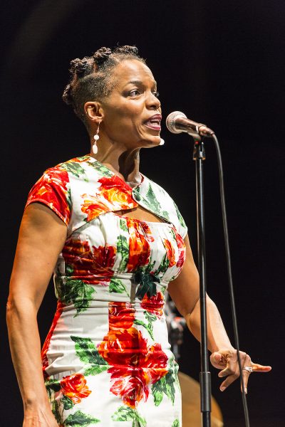 La cantante estadounidense, cumplió con creces su labor en el grupo, compartiendo su figura elegante y su excelente voz, como un instrumento más dentro de la formación, usando su poderoso scat en algunos de los temas. Arropada por sus compañeros, Freelon, nos deleitó con otras partituras, tres baladas: “Nature Boy” (Eden Ahbez), “Skylark” (Johnny Mercer / Hoagy Carmichael) cantada con el único acompañamiento del contrabajista Beldon Bullock y, cómo no, el conocido standard “Round Midnight” (Thelonious Monk / Cootie Williams / Bernie Hanighen) con el que puso punto y final a una de las actuaciones más exitosas del festival.