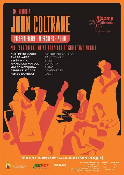 El miércoles 26 de septiembre de 2018 a las 21:00 en el Teatro Juan Luis Galiardo de San Roque se realizará el pre-estreno de Un tributo a John Coltrane de Guillermo McGill. Le acompañarán Marco Mezquida, Perico Sambeat, Reinier Elizarde, Juan Diego Mateos, más Belén Maya y Ana Salazar al cante y baile.