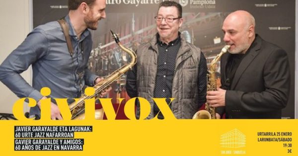 Concierto Homenaje: Javier Garayalde y Amigos: 60 años de jazz en Navarra. Civivox San Jorge. Sábado 25 de enero. 19:30.