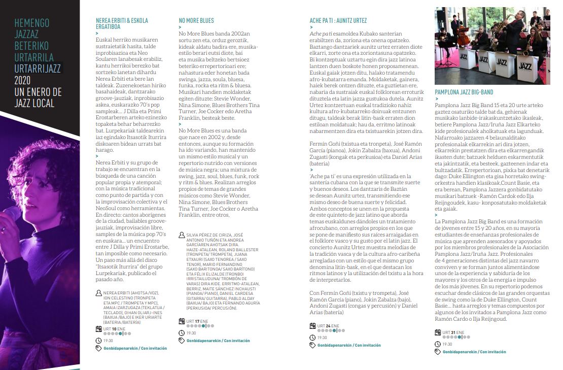 Entre el 10 y el 31 de enero de 2020 tendrá lugar una nueva edición de Urtarrijazz. Un enero de jazz local en Civivox San Jorge de Pamplona. El ciclo incluye conciertos, un concierto – homenaje a Javier Garayalde, una exposición de fotografías y dos charlas.