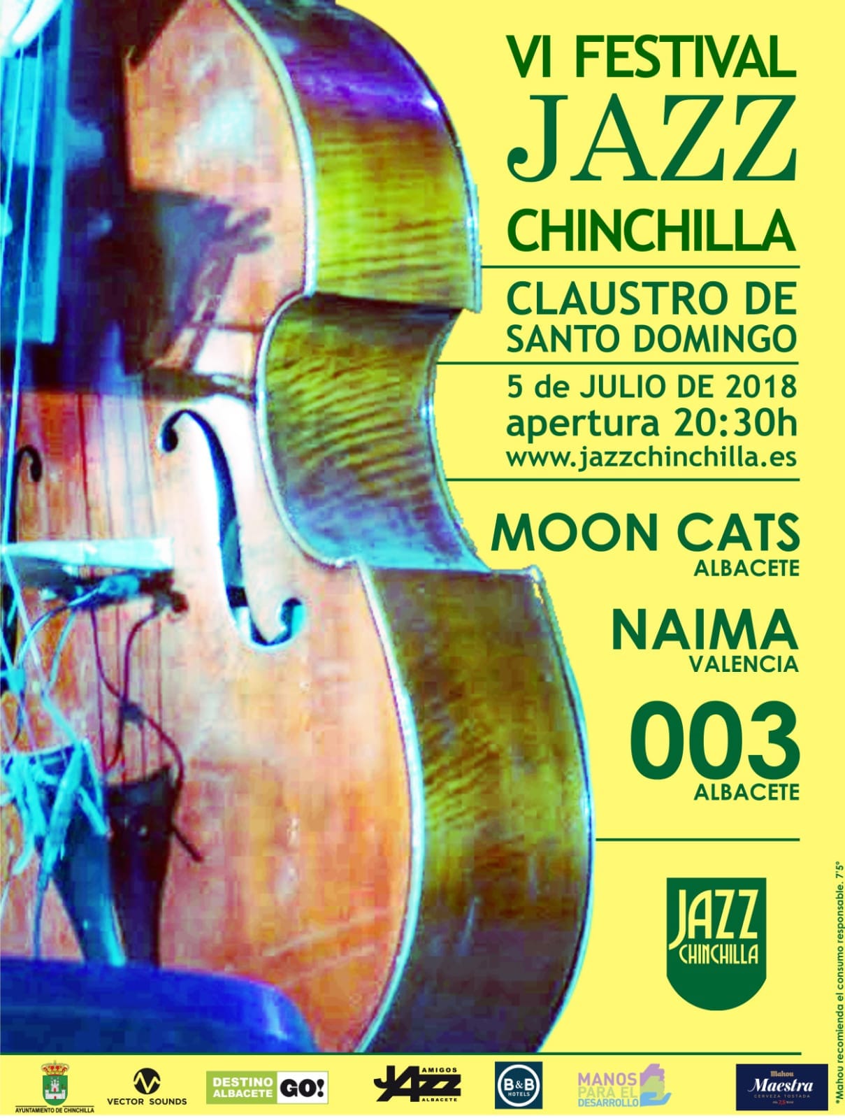 El 5 de julio de 2018, a partir de las 20:30 en el Claustro de Santo Domingo de Chinchilla (Albacete), tendrá lugar la sexta edición del Festival Jazz Chinchilla. Actuarán Naima, Moon Cats y 003. Toda la información en http://www.jazzchinchilla.es/JAZZCHINCHILLA/HOME.html