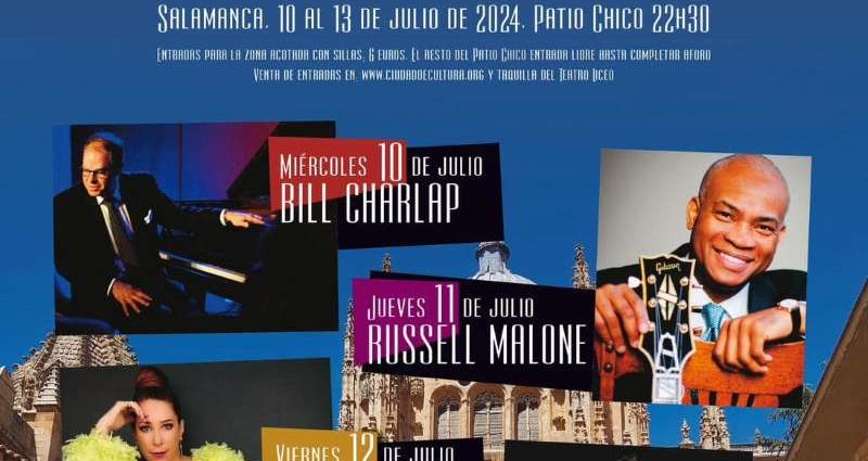 El VII Festival Internacional de Jazz de Salamanca se celebrará del 10 al 13 de julio de 2024 en el Patio Chico. Incluirá actuaciones de Bill Charlap Trio, Russell Malone Quartet, Robin McKelle Trio y Professor Cunningham and His Old School. Las entradas para la zona central tendrán un precio de 6 euros, disponibles en la taquilla del Liceo y en línea, mientras que el resto del Patio Chico tendrá entrada libre hasta completar aforo. El evento contará con 600 sillas en la zona central para el público.
