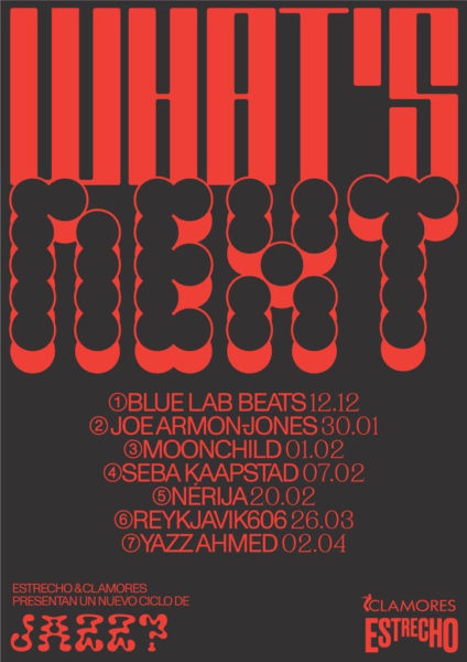 Entre diciembre de 2019 y abril de 2020 tendrá lugar la 2ª Edición de What’s Next? The Latest Jazz Generation. Los conciertos tendrán lugar en Sala Clamores y Tempo Club de Madrid. El ciclo está realizado en colaboración con el colectivo cultural Estrecho Colectivo.