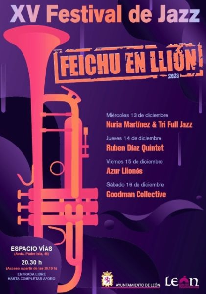 ![XV Festival de Jazz Feichu en Llión 2023 (León. 13 al 16 de diciembre de 2023) [Noticias de jazz] Tomajazz 9.0 XV Festival de Jazz Feichu en Llión 2023 XV Festival de Jazz Feichu en Llión 2023 (León. 13 al 16 de diciembre de 2023) [Noticias de jazz] - Tomajazz 9.0 - Entre el 13 y el 16 de diciembre de 2023 tendrá lugar en León el XV Festival de Jazz Feichu en Llión 2023 #Ciclodejazz #FestivalDeJazz #Festivalesdejazz #Noticiasdejazz](https://tomajazz.com/web/wp-content/uploads/2023/12/XV-Festival-de-Jazz-Feichu-en-Llion-2023-421x600.jpg)