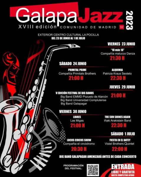 Entre el 23 de junio y el 1 de julio de 2023 tendrá lugar en Galapagar (Madrid), el XVIII GalapaJazz 2023.