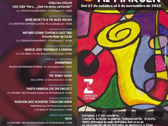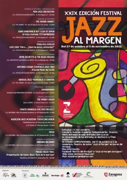 ![XXIX Jazz Al Margen 2023 (27 de octubre al 5 de noviembre de 2023. Zaragoza) [Noticias de jazz] 1 Tomajazz XXIX Jazz Al Margen 2023 (27 de octubre al 5 de noviembre de 2023. Zaragoza) [Noticias de jazz] XXIX Jazz Al Margen 2023 (27 de octubre al 5 de noviembre de 2023. Zaragoza) [Noticias de jazz] - Tomajazz 9.0 - Entre el 27 de octubre y el 5 de noviembre de 2023 tendrá lugar en Zaragoza el XXIX Jazz Al Margen 2023 #Ciclodejazz #FestivalDeJazz #Festivalesdejazz #Noticiasdejazz](https://tomajazz.com/web/wp-content/uploads/2023/10/XXIX-Jazz-Al-Margen-2023-565x425.jpg)