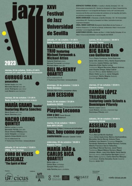 Entre el 20 y el 28 de octubre de 2023 tendrá lugar en Sevilla, el XXVI Festival de Jazz de la Universidad de Sevilla 2023.