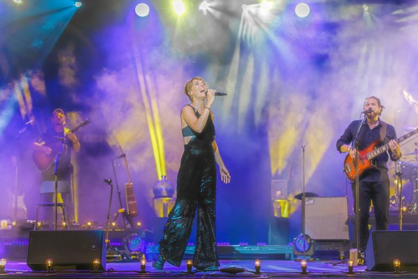 La aparición de la cantante, desde el pasillo central del auditorio hacia el escenario y entre las gradas, levantó al público asistente, un aforo completo, que le ovacionó con énfasis. Arropada por cinco excelentes músicos, la vocalista eligió dos temas de su reciente álbum Isa (Jazz / Parlophone. 2021): “Les jours heureux” (Barcella) e “Imagine” (Barcella / Laurent Lamarca) para comenzar la actuación. Su encantadora presencia y su manera de estar en el escenario mostraron una cercanía y una conexión con el público como pocas artistas consiguen reflejar, poniendo, según sus palabras, los cinco elementos sobre el escenario: aire, tierra, agua, fuego, y los propios músicos. La actuación continuó con “Si jamais j’oublie” (Assane Attye / Jean-Etienne Maillard) de su álbum en vivo Sur la route (Playon / Warner Music, 2015) y “Qué vendrá” de Davide Esposito (Effet Miroir Warner Music, 2018) tema que la cantante compartió con la audiencia, cantando el estribillo con ella en español. Geffroy habló sobre los tres años que han pasado desde la publicación de su penúltimo disco, años que ha dedicado a su vida personal, que han dado fruto en su último trabajo discográfico y en canciones íntimas como: “Ce que tu es dans ma vie” (Davide Esposito / Jean-Etienne Maillard / Renaud Rebillaud) que alargó con una muestra de su fuerte y melodiosa voz, “De couleurs vives” (Sylvain Duthu / Tibz) y “Et le reste” (Barcella) un mensaje de advertencia sobre el legado que dejaremos para el futuro, cantada en solitario con el acompañamiento del teclista Hadjaj. La mágica actuación continuó con: “Les passants” (Isabelle Geffroy / Tryas) incluida en su primer álbum Zaz (Play On Records, 2010), los temas “Comme ci, comme ça” y “Oublie Loulou” ambos del disco Recto Verso (Musicor, 2013), y “Paris sera toujours Paris” de su álbum Paris (Play On, 2014), cuatro canciones con bases de gipsy jazz y solos del guitarrista Guichto. La arrolladora energía de Zaz contagió a los animados espectadores en un tema tras otro, así hasta veinticinco canciones que les llevó casi dos horas de concierto. La voz de la cantante fue acusando el esfuerzo y el calor que reinó durante la actuación, pero ella continuó animando a sus músicos pidiéndoles más entrega en los momentos intensos.